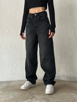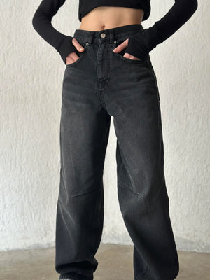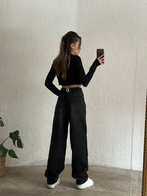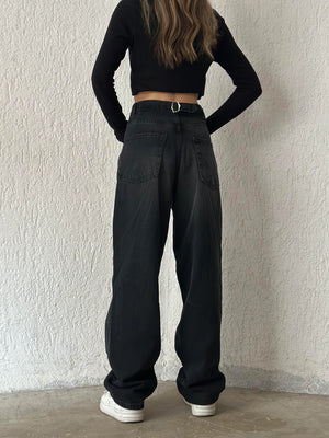 جينز باكي أسود بحزام خلفي نسائي