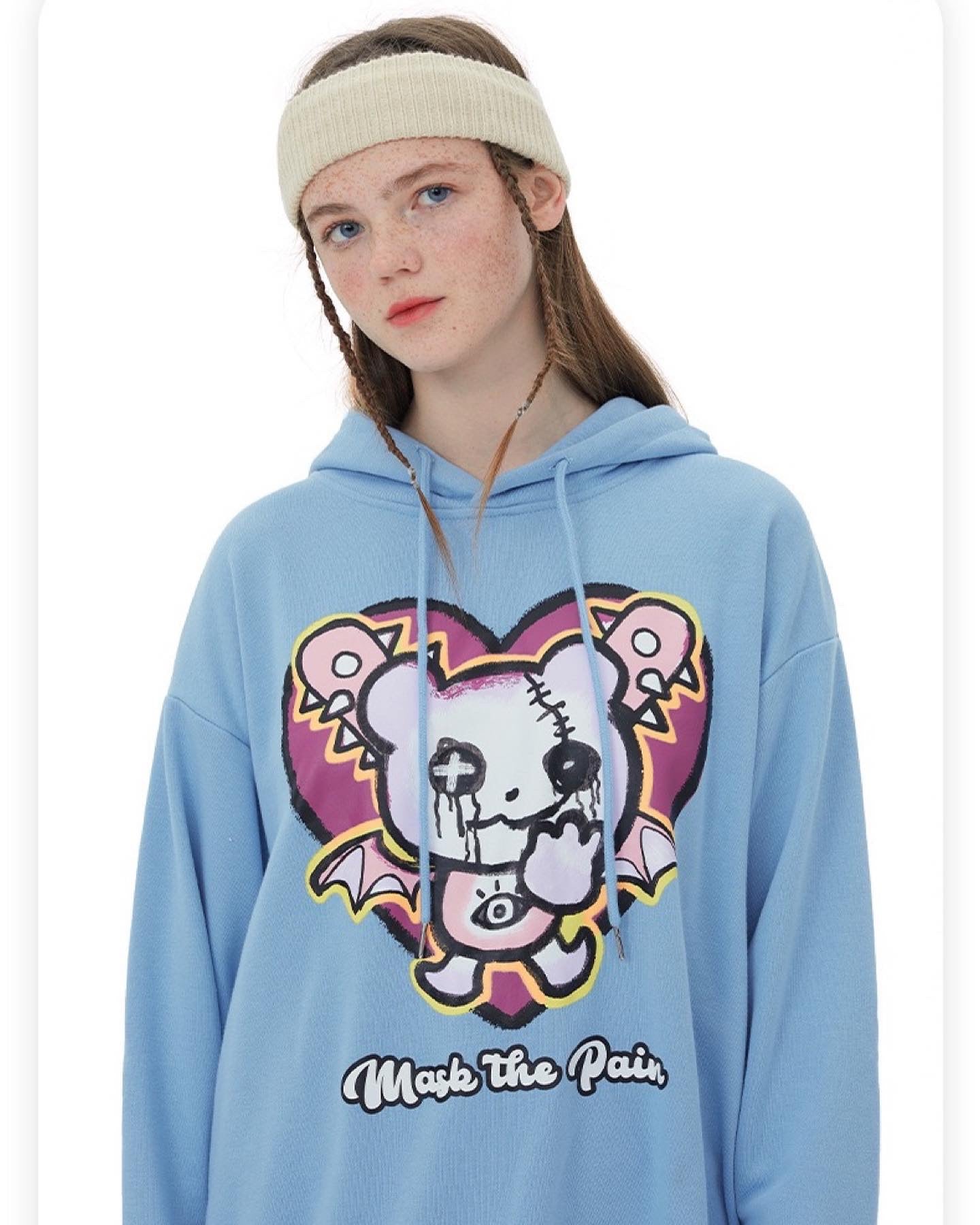 Mask The Pain Oversized Hoodie ( M / سمائي ) - https://track.storemoha.com/products/t-2?variant=43351011655901