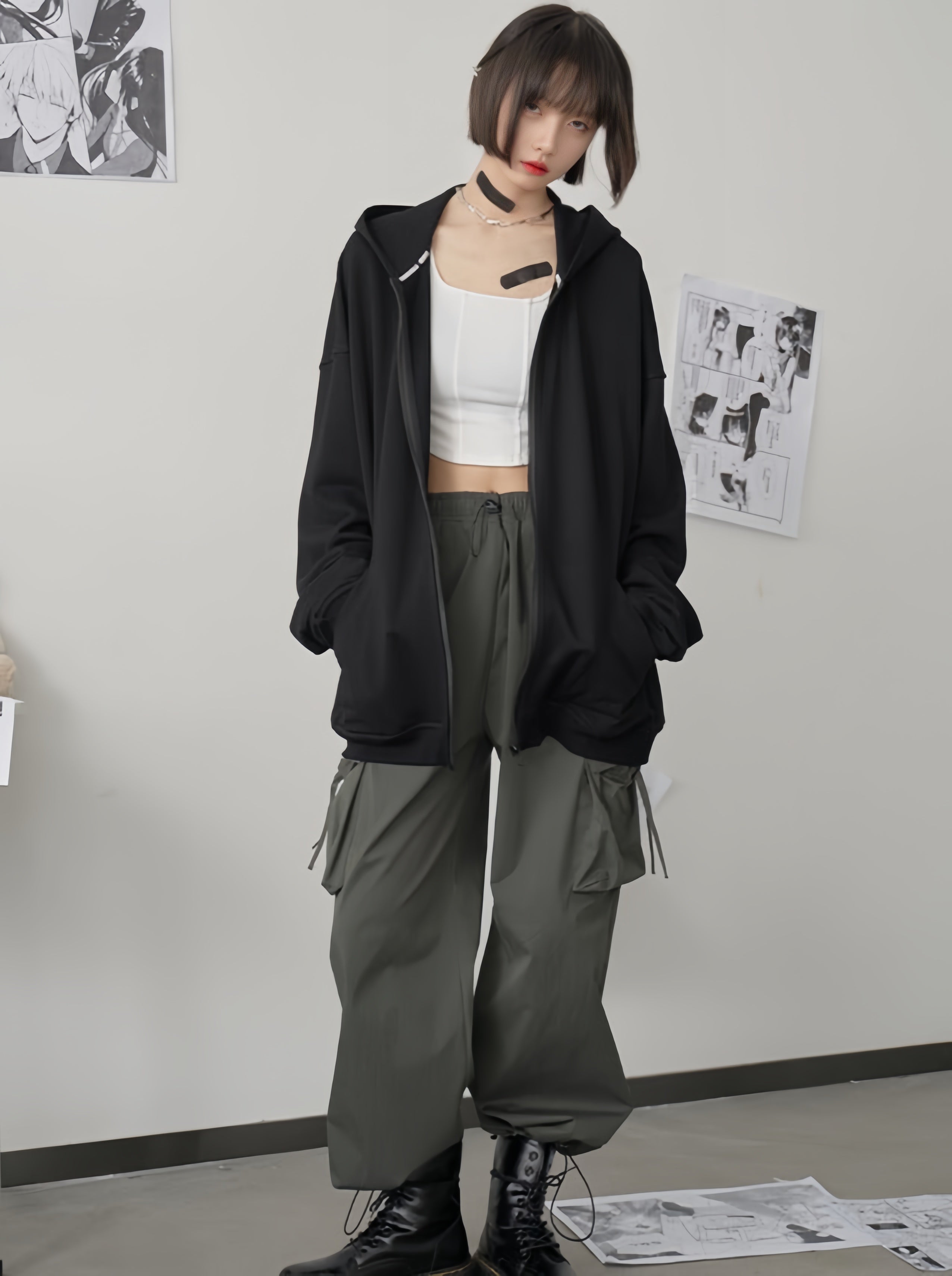 Unisex Black Zippered Cardigan